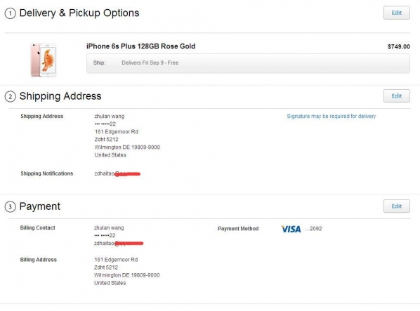 11.信用卡地址建議和收貨地址一樣,今年支持銀聯了,但砍不砍單還是蘋果說了算。6S現在是不怎麼會砍單的。7就不好說了