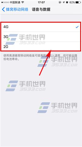 2)打開後點擊【語音與數據】,最後我們即可切換網絡狀況了。(如下圖)