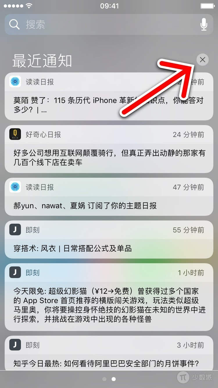 這也是大家期盼已久的一個功能,iOS 10 對通知中心和 Widget 進行了重新設計之後,你終於可以通過 長按右上角的關閉按鈕清除所有通知了。不過目前這個功能僅僅支持 3D Touch 操作,所以 6s 之前的設備暫時無緣這個功能。