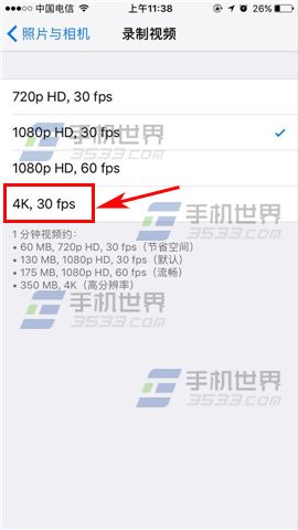 蘋果iPhone7怎麼開啟4K視頻錄制