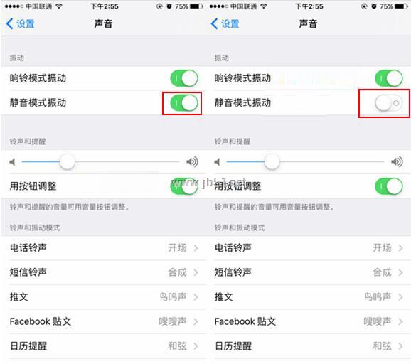 這裡主要強調的是響鈴模式震動表示又有聲音又振動,而靜音模式震動是只有振動沒聲音。也就說如果關閉了這一開關,那麼就不會振動。不管你現在使用的是iOS9還是iOS10設備,其方法是一樣的。以下是具體的操作步驟。