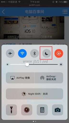 打開iPhone 7手機的“控制中心”頁面,啟動“免打擾模式”按鈕開關。