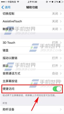 2)最後再將【便捷訪問】那欄右邊的橢圓往右拉打開即可開啟。(如下圖)