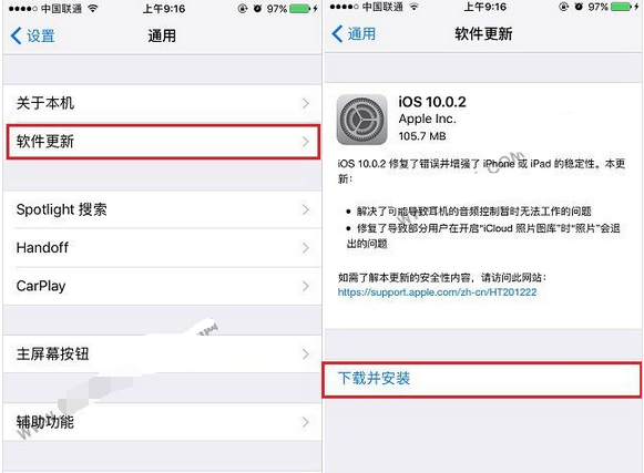由於iOS 10.0.2系統更新包僅50M左右,iPhone 7與7 Plus可以借助WiFi或移動網絡,輕松通過OTA方式完成升級。以下是蘋果iPhone7升級iOS10.0.2詳細步驟。
