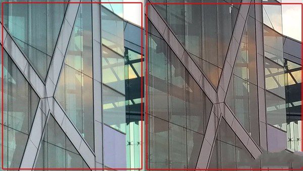 1、截取兩個樣張的部分放大後,三星S7 edge已經將燈箱牌的顏色進行了微調,使人直觀感受上更好,並且亮度也更大,但問題是有些不真實,與原本色彩有一定的偏差。iPhone 7 Plus雖然看起來相當素。