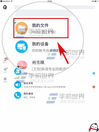 1)登錄iPad版QQ,首先進入主界面中的【我的文件】;(如下圖)