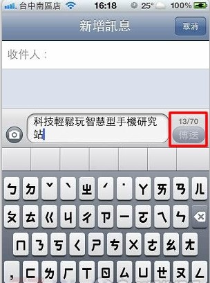 短信是每個用戶的手機必備的通訊工具之一,目前一條短信中文字數是70個字(含符號),而英文字數是160個字,超過字數就會分兩次計費,精打細算的消費者絕對不會把短信用成兩條,iPhone 短信有內置的字符計數(即字數統計)功能,傳給對方後還能回傳給寄件人確認對方已收到短信。