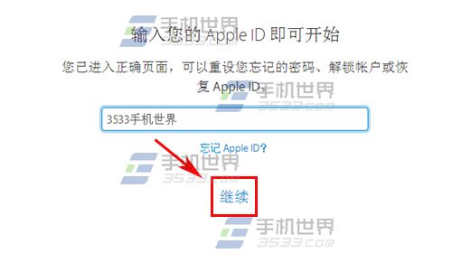 3)隨後輸入你的Apple ID點擊【繼續】。(如下圖)