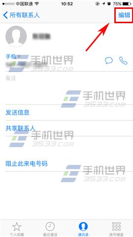 1)打開【電話】,找到你要設置的聯系人並打開,打開後點擊右上角的【編輯】。(如下圖)
