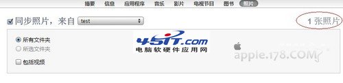 勾選同步照片,並且在後邊的下拉菜單中選擇自己想要同步的圖片。設備能默認播放的視頻也可以同時同步進去。