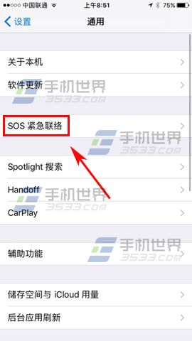 2)升級到IOS10.2系統後,我們首先先打開手機【設置】,然後找到【通用】,打開後點擊【SOS緊急聯絡】,接著再將【Click Sleep/Wake to Auto Call】選項開啟即可(由於小編使用的還不是正式版本,所以目前SOS緊急聯絡功能還沒有完全漢化,等正式發布後就可以了。PS:Countdown Sound 是指呼叫緊急服務時),隨後便可設置聯系人等信息了。(如下圖)