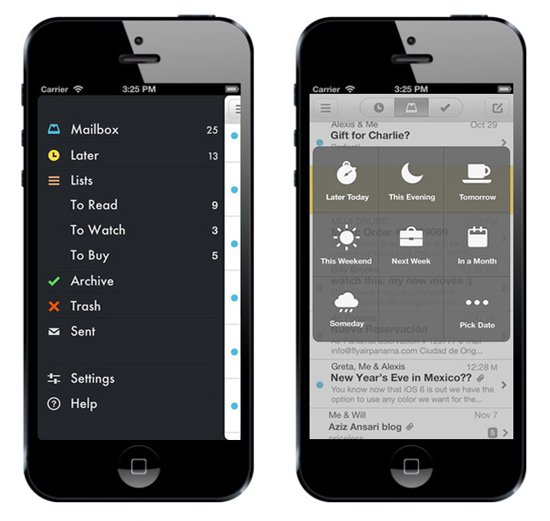 這是上周剛剛推出的郵件應用,它將徹底的改變你對Email的看法與使用體驗。Mailbox的目標是幫助你盡可能快的將郵件箱清零(沒有新的消息)。它是如何工作的?千萬別以為它就是讓你給郵件標記好未讀或者已讀,而是它會讓你先回復那些緊急的消息,然後把剩下的那些沒有時效性的郵件歸檔,比如“今天晚上看,明天看,下周或者是指定一個日期看”。