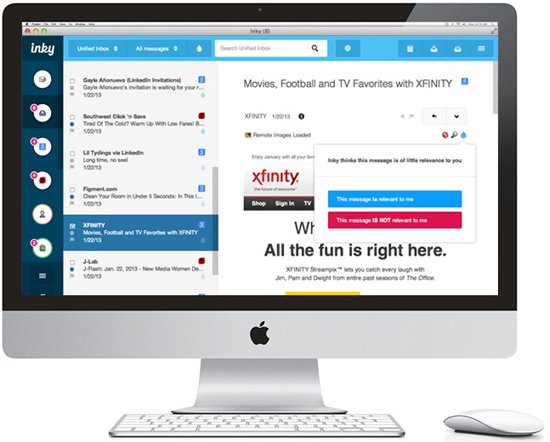 Inky和以上幾款不同,它是一個桌面的應用程序,它可以幫你組織那些令你發瘋的“笨重”的收件箱。它不僅設計漂亮,更有“智能查看”和“相關查看”,讓你通過將電子郵件進行排序,而以更有意義和幫助的方式來閱覽。例如,那些來自你親密聯系人的郵件將用明顯的藍色漂浮在郵件列表的頂部,不太重要的郵件和垃圾郵件會以褪色顏色出現在底部。它支持大多數郵件帳號,並且設置起來超級簡單。