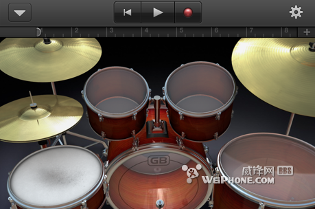 5、隨後,我們看到了鼓組樂器的界面。來吧"練練手隨便敲敲,哒哒哒洞!是不是很帶感呢?