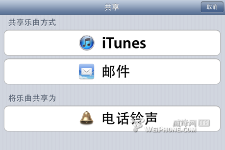 然後,長按這個編配文件縮略圖可以彈出選項,我們選擇共享,選擇最下面的一項“電話鈴聲”。