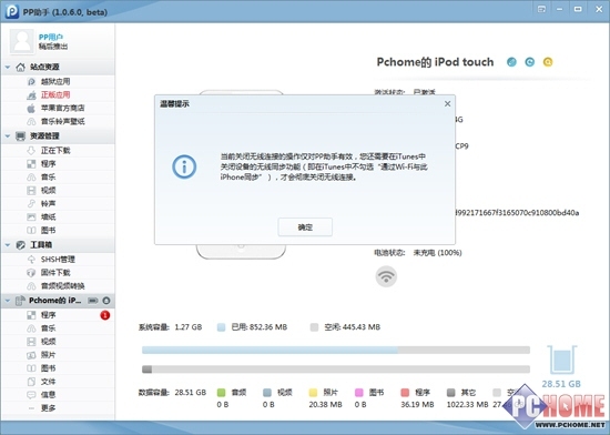 根據PP助手的WiFi開關提示,當用戶使用手機助手或者iTunes無線連接電腦後,用完都不會忘記徹底關閉WiFi功能,那麼根本不用擔心手機上隱私信息遭到洩露。