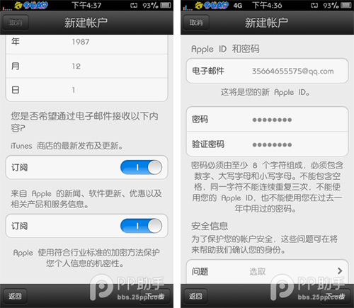 6.填寫正確:郵箱地址、密碼、安全信息、出生年月日--點擊【繼續】