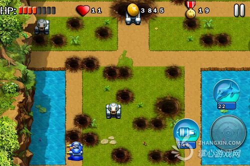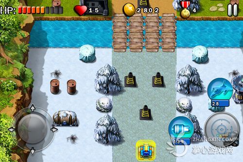 這款游戲是通過虛擬遙感來控制方向,虛擬按鍵來控制射擊的,操作的方式非常簡便,並且沒有什麼誤操作以及擋住視線的情況發生,這樣簡便的操作方式在游戲初期沒有新手介紹還是可以容忍的,只是顯得有點貼心。