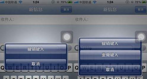 iPhone4S編寫短信時候,如果想把寫的內容全刪掉,只需晃動你的iPhone4S幾下,會彈出個窗口,選擇“撤銷鍵入”就可把內容全刪掉了,不用按著刪 除鍵半天了。如果想把剛刪掉的內容恢復,晃動iPhone4S選擇“重做鍵入”剛刪掉的內容就回來了!