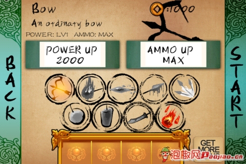如果戰斗力夠強打過了一個關卡,就會得到相應的金幣,可以對武器進行升級。升級是很簡單的,每個關卡過了之後都會切換到武器畫面,椒友們在這裡可以對武器進行升級,升級後的武器威力將更加猛烈,可以用更少的次數擊敗怪物!如果在某個關卡失敗了也不要緊,可以重新過該關卡,不會回到第一關的。