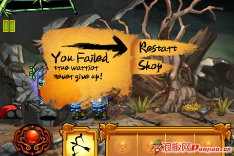 游戲將經歷很多個關卡,每一關的難度和出場人物都是不一樣的。每過一關可以獲得相應的金幣獎勵,椒友們可以將獲得的金幣對武器進行升級,這樣可以加速大營僵屍王和他的手下哦。默認的武器是射箭,但是每一關都可以放出一個大招,在你感覺快無法匹敵的情況下,千萬別吝啬,放出你的大招保住小命吧!按住屏幕下方紅色的按鍵,就可以發射大招了!