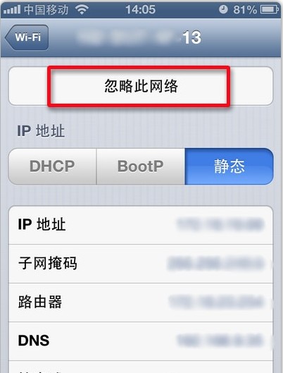2.點擊【忽略此網絡】,然後回到主屏幕,重啟手機。