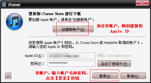 步驟3:點擊右上角【登錄】按鈕,彈出用戶登錄對話框。如沒有注冊過蘋果賬號,請點擊XXXXXXX。