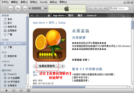 提示:下載免費應用軟件的前提是電腦裡有安裝 iTunes和注冊了蘋果賬號。