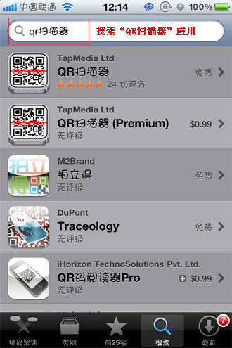 1、進入“app store”蘋果應用商城。搜索“二維碼掃描”或“QR掃描器”都能找到識別二維碼的應用。這裡我們直接搜索的“QR掃描器”,下載第一個應用。(附注:下載前,需要登錄個人蘋果賬號。
