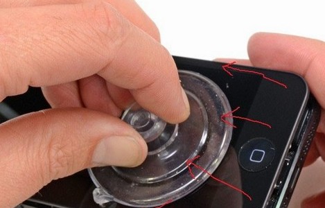 2、吸盤打開前屏幕 (從底部開始打開,逐漸往頂部掀開的過程中要慢點,因為屏幕頂部和機器內部主板是有排線的)