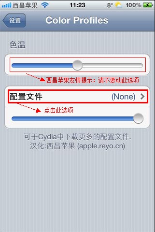 加載配置文件 例如:‘blue’ 就是稍微加點藍色,會導致設備偏冷屏,至於加多少,找台你對比過後你中意的設備來調節。