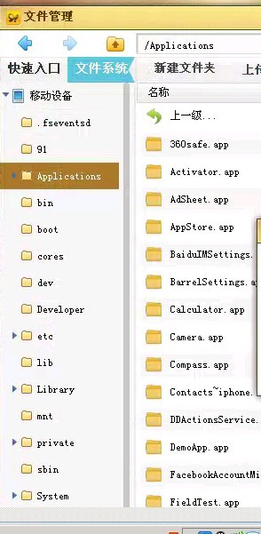 此時,你的圖標全部回來了,可是還是閃退,這個問題不要著急,不要考慮OPENSSH開關,不要考慮無法打開IFILE這些沒用的,你只需要裝一個大家都遠離的東西。那就是-------91助手(注:我可不是91的托兒,我從來不裝91),iTools,PP助手,IFUNBOX之類的不要指望了,這個時候他們也是無助的,因為他們在此場景下(applications下全部程序閃退)無法開啟OPENSSH 無法修改權限。