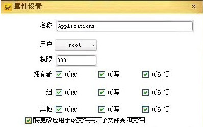 2.(關鍵步驟)用91選擇文件管理,然後右鍵單擊applications修改權限為0777 並且選擇覆蓋至下級目錄(這一步尤為重要,不加載下級,你下級裡面的MOBILEPHONE等還是沒有權限打開,還會導致閃退。)。