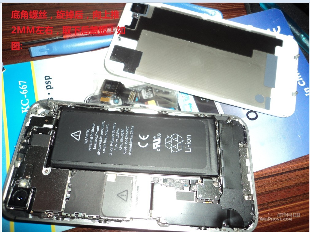 然後移開電池,不一定要把電池完全取下來,只要不影響到換攝像頭就ok,電池後面有膠水,要小心點取,最好用專門的翹具!