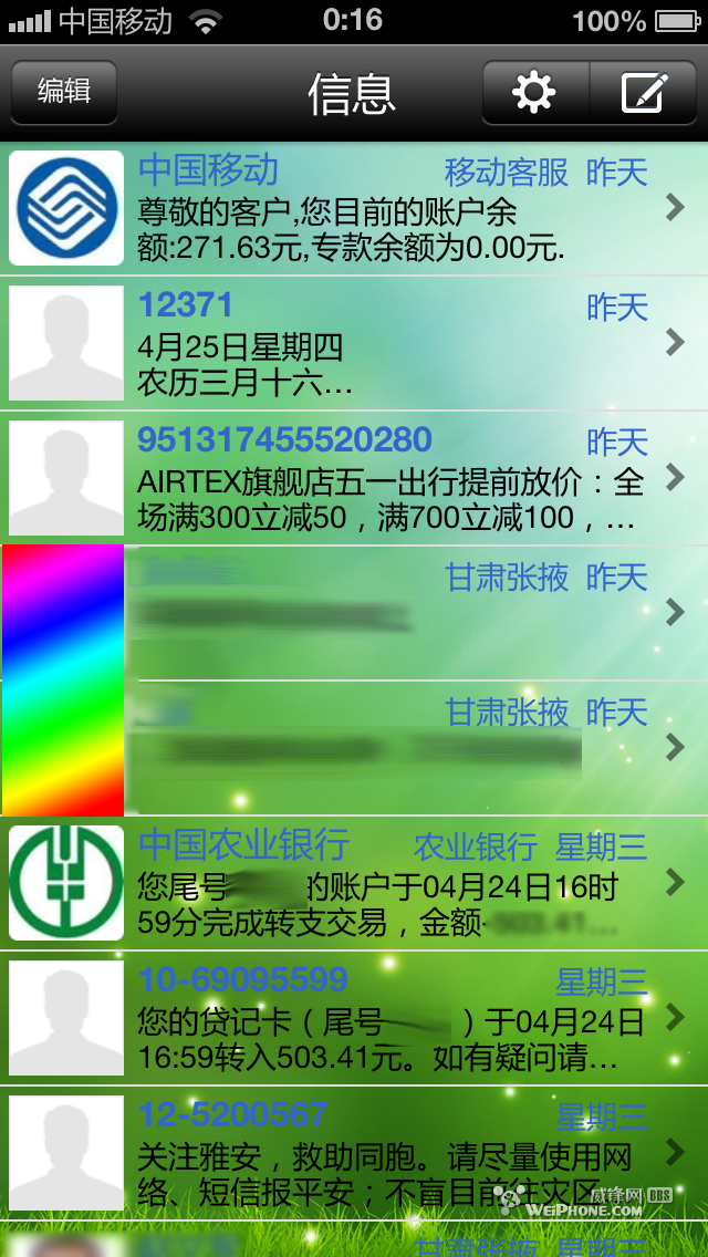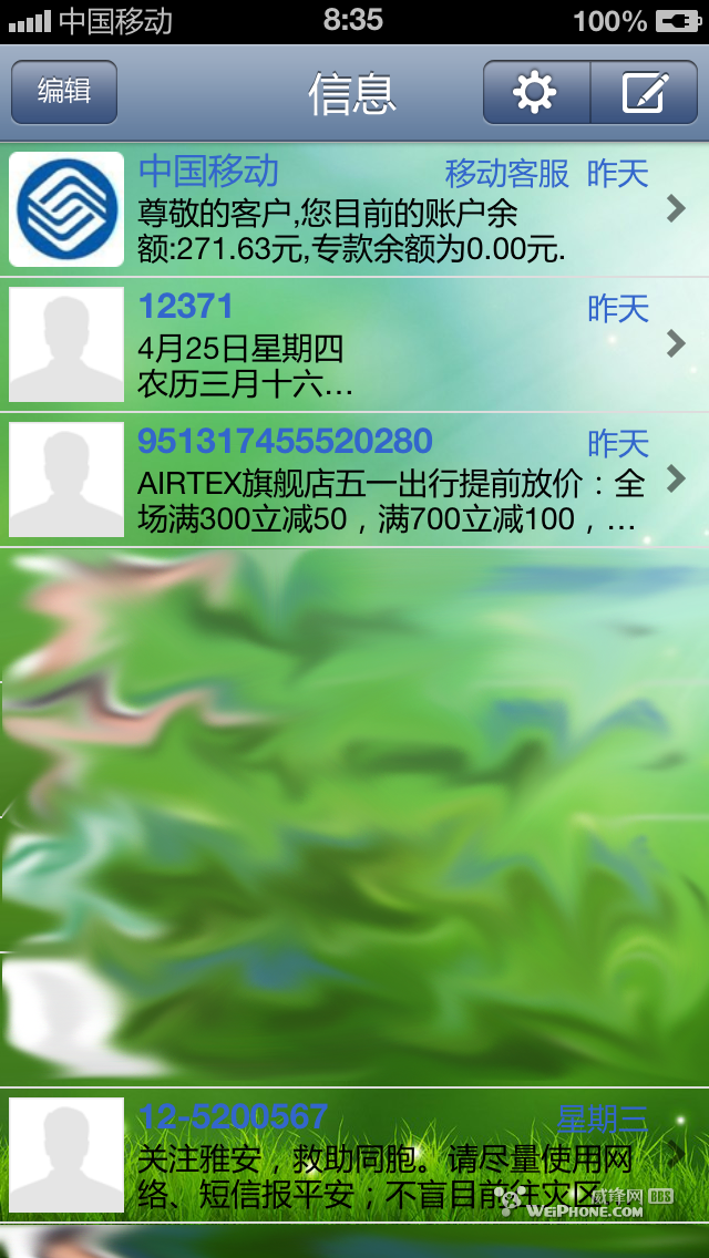 現在注銷之後就能看到背景圖片了,但是BiteSMS中的配色可能和你選擇的圖片不搭配,所以需要修改配色。