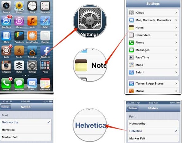 在這裡,你可以切換三種字體,Noteworthy , Marker Felt 以及 Helvetica,選擇其一,然後退出設置即可生效