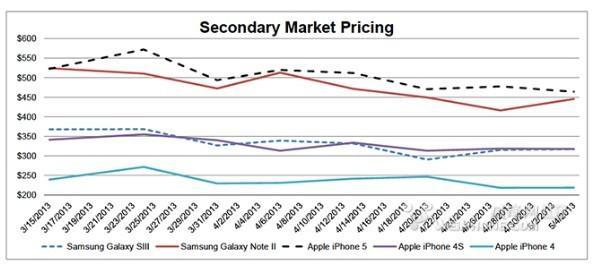 投資銀行Piper Jaffray 星期二公布了最新的iPhone 轉售價值指數,發現在長達8 個星期的調查中,蘋果iPhone 的貶值率低於對應的三星Galaxy 設備。他們在報告中將iPhone 5、iPhone 4S、iPhone 4、Galaxy S III 和Galaxy Note II 在美國eBay 上的拍賣價格進行對比,從而掌握當前蘋果手持設備的消費狀況,測試美國消費者對沒有補貼的設備的購買意願。