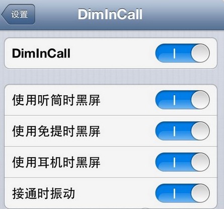 為了避免這種情況發生,國人snakeninny開發了一個非常有用的插件DimInCall,這個插件可以判斷手機是否接通,一旦接通就自動關閉屏幕,如果需要打開屏幕就必須按Home鍵,或者掛斷電話。