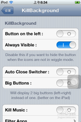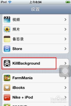4)在設置菜單欄裡,找到“KillBackground”,