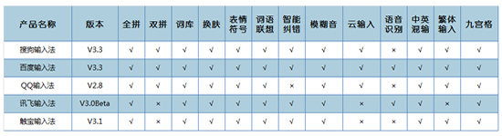 小編用表格的形式對比列舉了每種輸入法的基本功能,從表格來看,五種輸入法擁有的功能基本一致,那麼各自的性能如何呢?接下來小編就對其一一測試,並給每一項功能點打分。