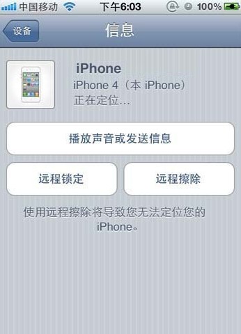 溫馨提示:遠程擦除等遠程操作需要你的iPhone或iPad鏈接到了互聯網,也就是說需要把蜂窩數據打開或者鏈接有Wi-Fi網絡。