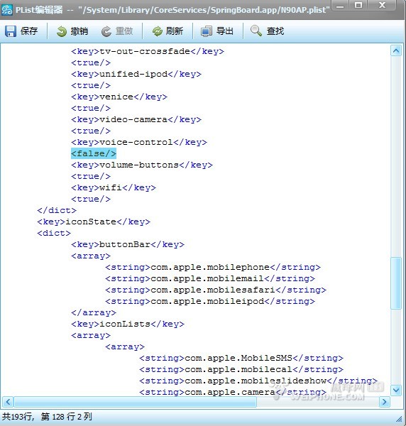 方法二:電腦用itools等文件管理工具打開System/Library/CoreServices/SpringBoard.app/N90AP.plist然後右鍵打開找到voice-control把true改為false保存退出,注銷或者重啟就可以了。