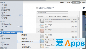 2.將touch使用數據線連接到電腦,然後右擊點”傳輸購買軟件”,然後使用本文的方法,確認電腦中的界面和touch的界面一致,這時候,勾選你想要的app,再傳輸即可.
