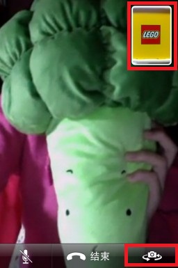 10.連接成功!屏幕上方紅色框體內的是您的圖像,大屏幕中是對方的圖像。右下角的圖標是選擇“前置攝像頭”、“後置攝像頭”的按鈕。