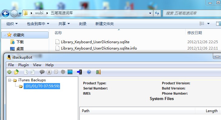 2、再在iBackupBot中選中該備份,右鍵Restore,恢復到手機(連接自己備份時的手機,且只連一部) ,完成後機器重啟後, 進入設置-通用-鍵盤(此時會卡住約10秒的樣子),進入鍵盤設置頁用戶詞點進去,可能會卡數秒,正常,此時應該能看到非常多的五 筆詞組了,OK了,短信筆記什麼的都可以用五筆了。
