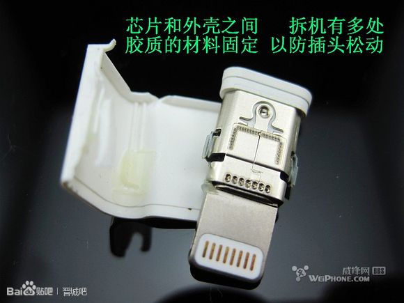 第二種為原材料組裝,這種最有迷惑性,首先它的外殼和芯片和iphone5行貨配的是一樣的,充電和數據同步也正常,商家基本上都把它做為原裝拆機的、盒裝行貨來賣,這裡說一下盒裝行貨,不能說絕對吧,至少網上所謂盒裝正品的蘋果配件(充電器、數據線、耳機、轉接頭之類的),百分之99.99包裝盒是仿的。原材料組裝的有一個致命的缺點,就是使用壽命,有可能一用就壞,也有可能運氣好一直沒壞,但百分之60左右,你在使用一個月之後就會出現損壞,接觸不良等情況。看完圖,你就明白為什麼了