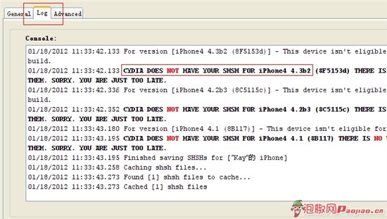 4. 切換下方的標簽,從“General”到“Log”,可以查看TIny Umbrella是否在為你下載SHSH