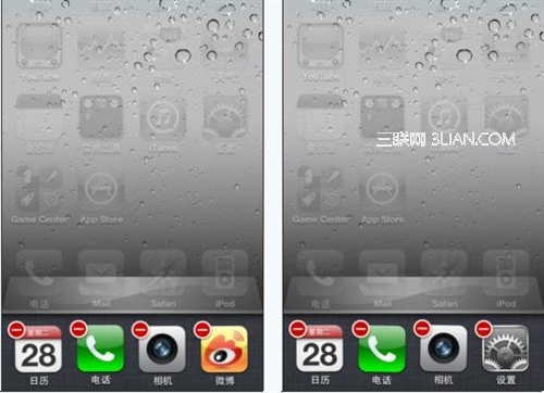 多任務關閉:當我們按兩下進入多任務模式選擇時,任意按住某一個圖標,圖標晃動並且在左上角出現白變紅地的“-”式的按鈕這時我們選擇按下要關閉的程序左上方的“-”式圖標便可關閉改程序,隨後按下主屏幕按鈕便可保存操作。