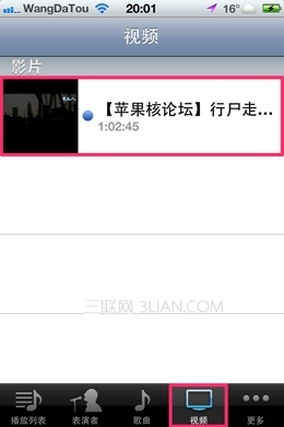 7.打開你手機裡的iPod,選擇視頻,就能看見導入的影片了。