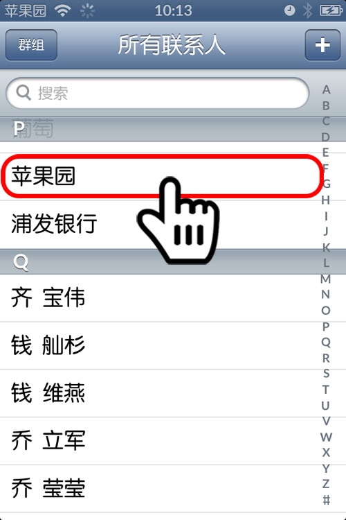 第2步:選擇想要設置個性鈴聲的聯系人(以蘋果園為例)